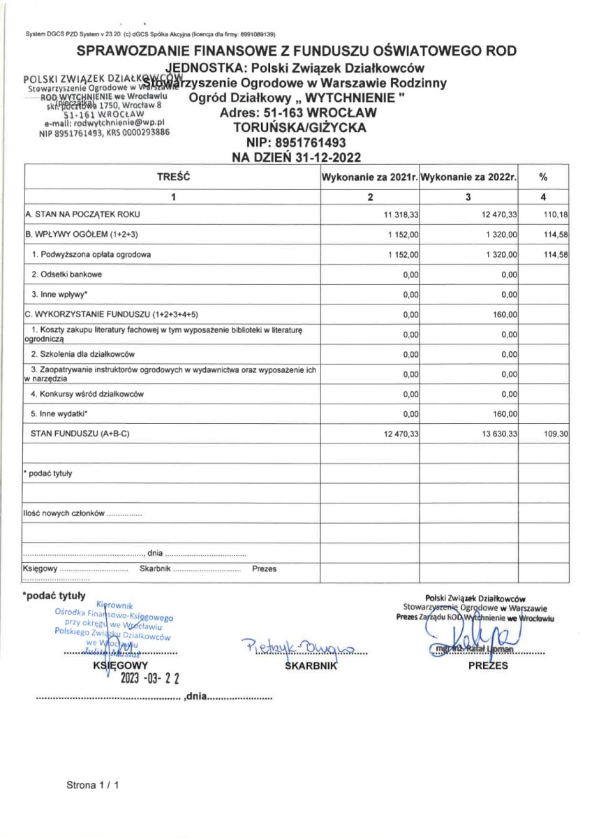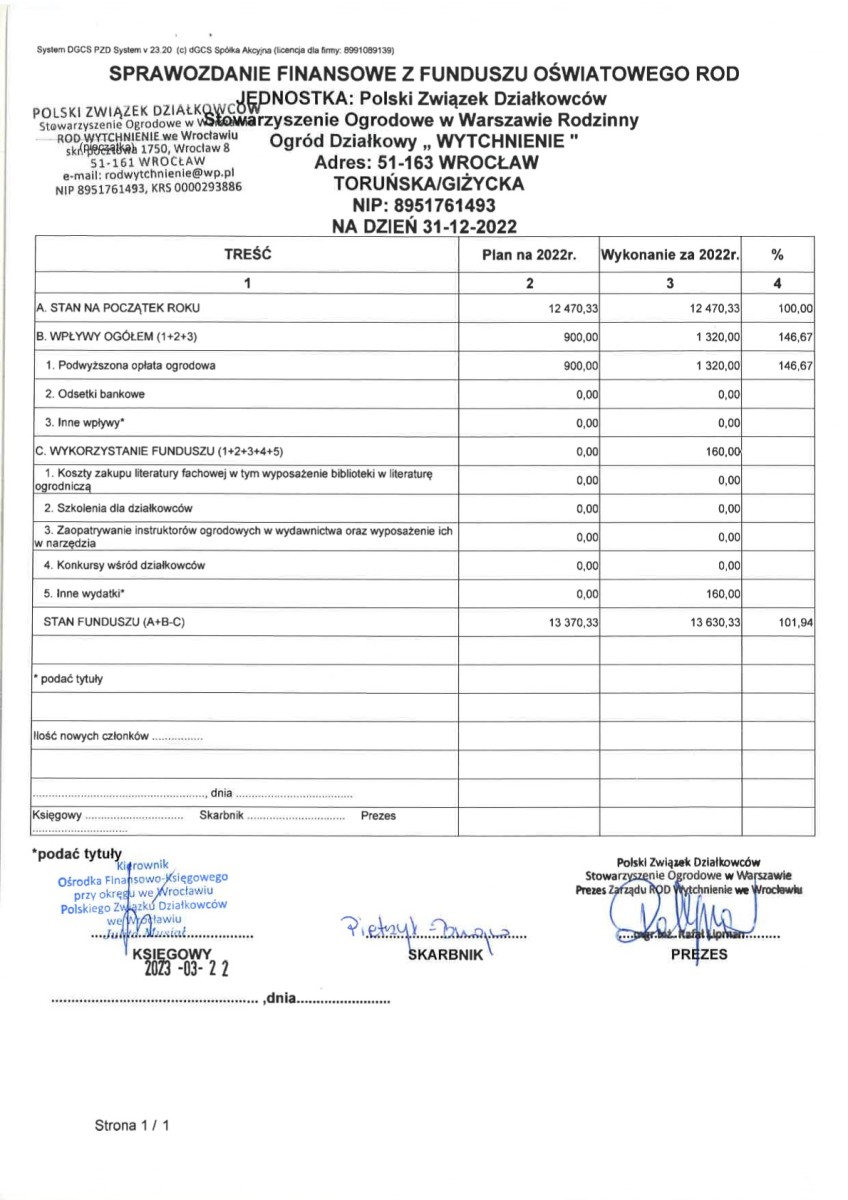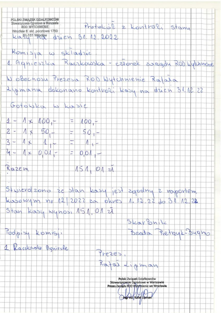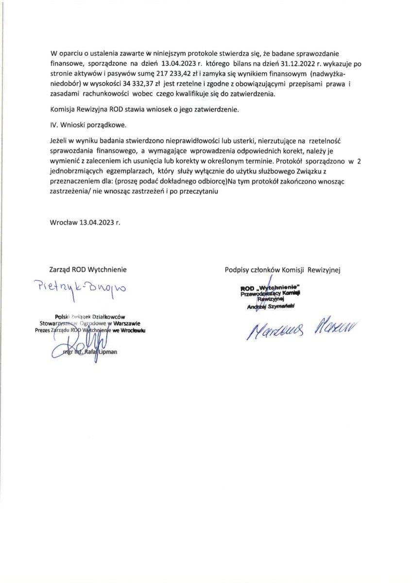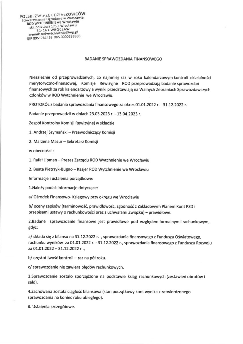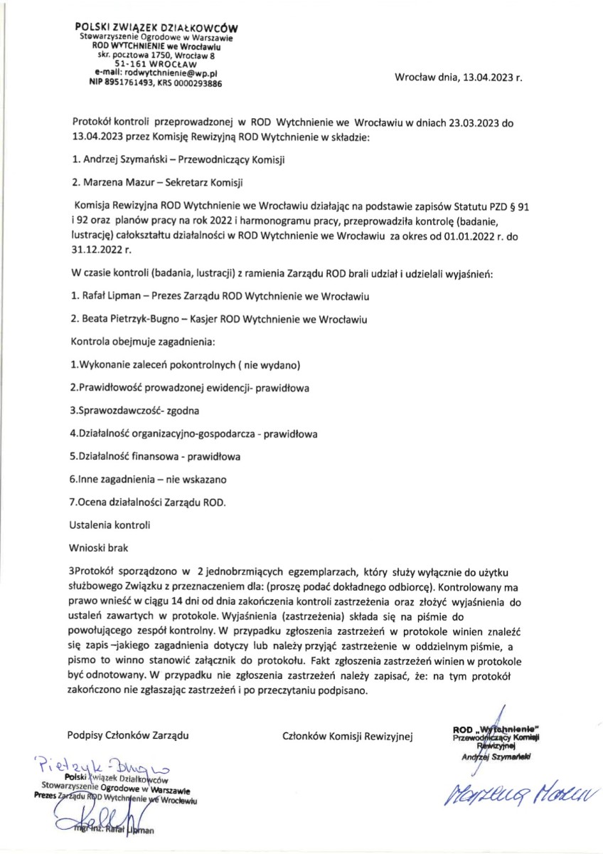 - Protokół Komisji Rewizyjnej ROD Wytchnienie we Wrocławiu