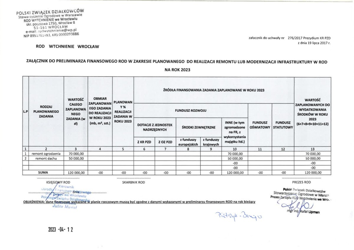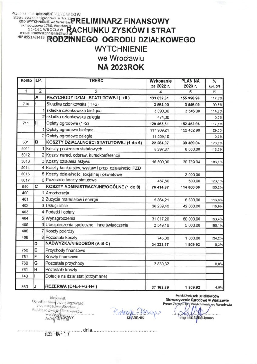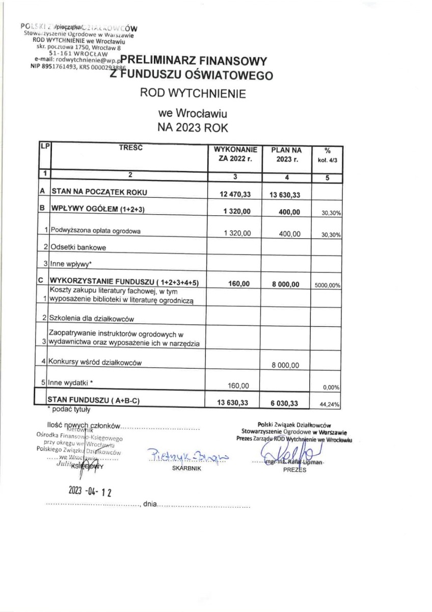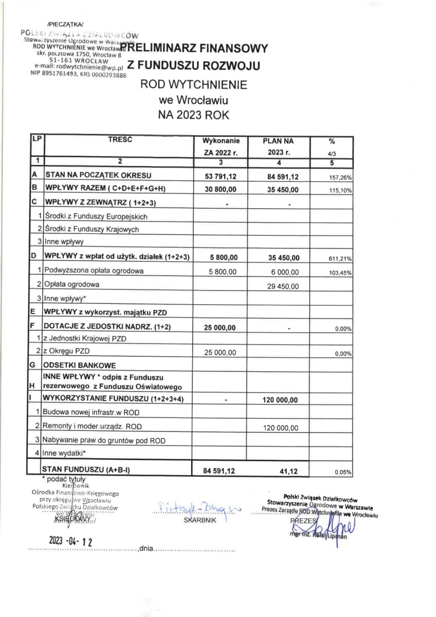 - Preliminarza ROD Wytchnienie we Wrocławiu na 2023r.