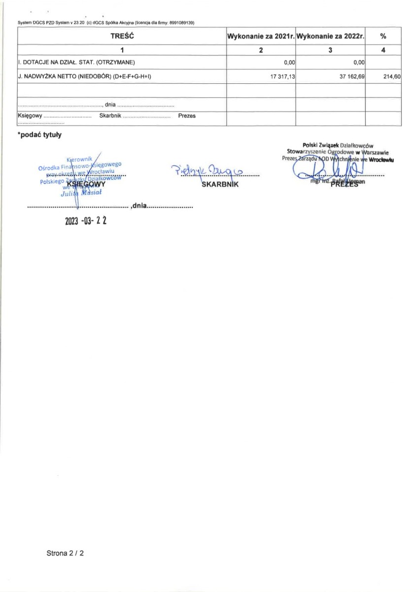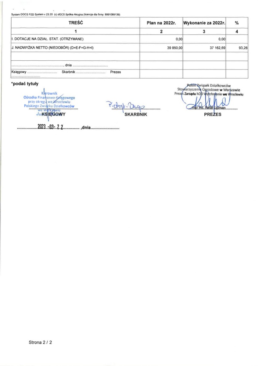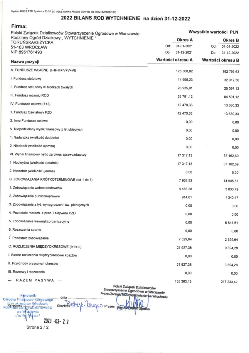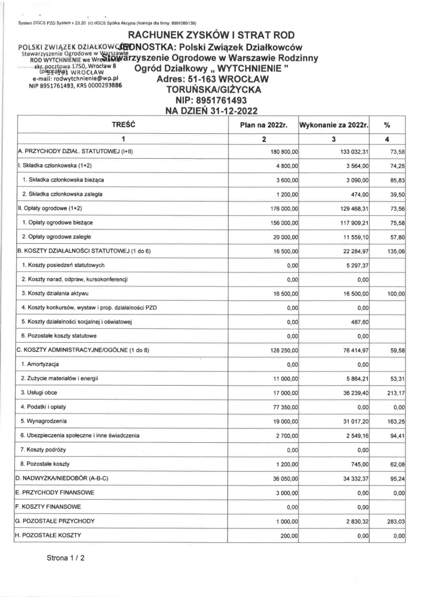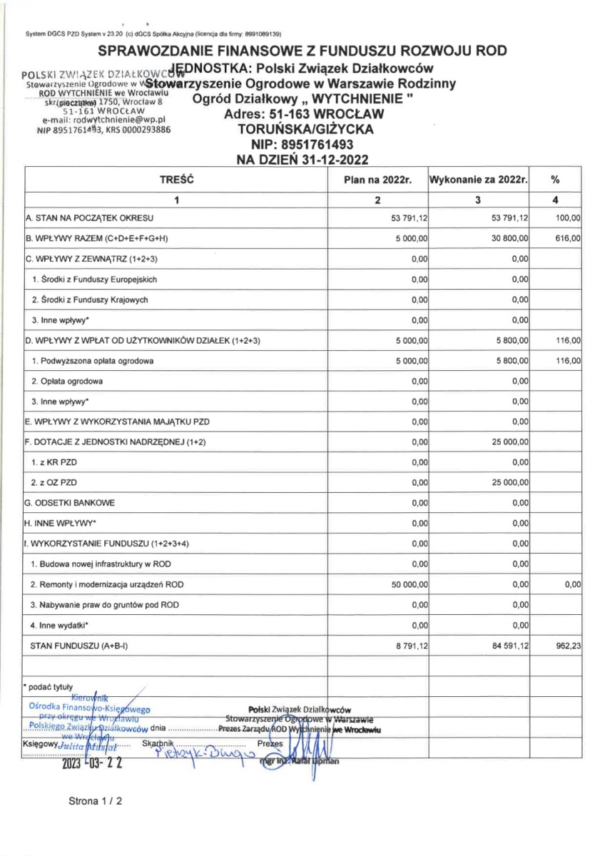 - Preliminarza ROD Wytchnienie we Wrocławiu na 2023r.