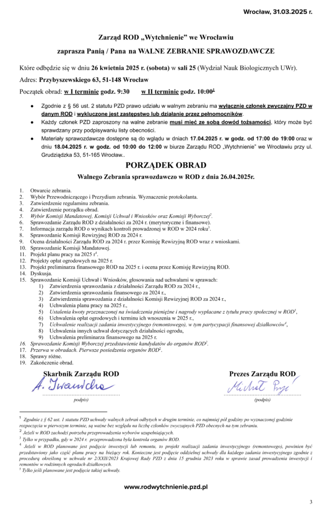 Dzisiaj zostały wysłane zaproszenia (listowne oraz e-mailem dla tych, którzy wyrazili zgody RODO) na Walne Zebrania takie jak na poniższych zdjęciach.