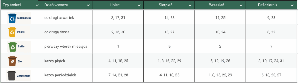Harmonogram wywozu śmieci:
